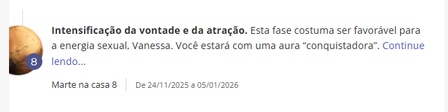 - Ao clicar no seu trânsito de Marte, a interpretação mostrará exatamente em qual área da vida essa sensibilidade pode se manifestar.