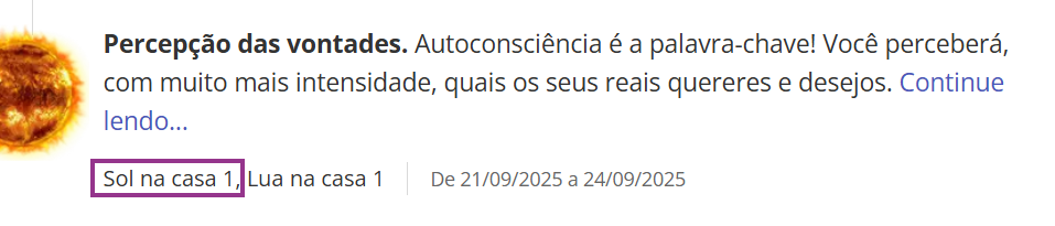 - Procure pelo trânsito de “Sol na Casa…” e veja qual é o número da casa que está em destaque neste momento. Na imagem abaixo, por exemplo, a pessoa tem o Sol na Casa 1.