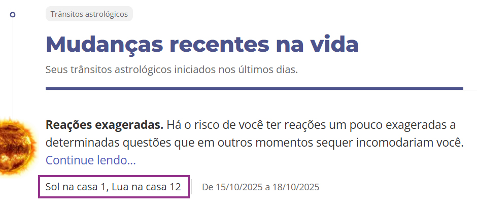 - Então, procure nos trânsitos o de “Sol na Casa…” Na imagem abaixo, por exemplo, a pessoa está com Sol na Casa 1.
